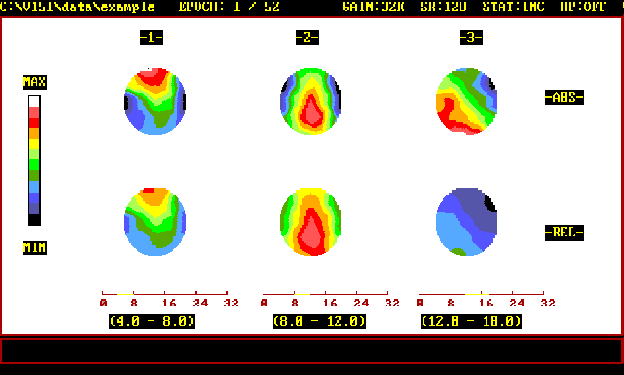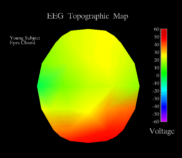 de cores é atingida. Esta abordagem proporciona uma representação muito mais precisa e representativa da atividade cerebral, dando uma visão gráfica da localização de alterações na amplitude, ritmo, etc., em relação à superfície do cérebro. Os neurologistas que trabalham com os sistemas de topografia cerebral de EEG logo foram capazes de diferenciar os vários tipos de diagnósticos (incluindo algumas doenças mentais de origem biológica, que se desconhecia previamente). Localizar com a precisão muito alta a localização de alterações do EEG se tornou muito mais fácil. Além disso, o uso de animações quadro-a-quadro de imagens tiradas de mapas cerebrais (o chamado modo cine) tornou possível pela primeira vez o estudo dinâmico da função cerebral em ação.
