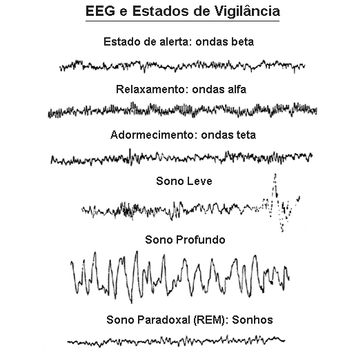 Desde os tempos de Berger, é conhecido o fato que as características das ondas registradas no EEG mudam conforme a situação fisiológica, especialmente com o nível de vigilância (acordado, dormindo, sonhando, etc. ). A freqüência e a amplitude das ondas registradas mudam, e então essas ondas características foram batizadas com nomes como alfa, beta, teta e delta. Determinadas tarefas mentais também alteram o padrão observado nas ondas tomadas em diferentes pontos do cérebro (veja o artigo sobre as bases fisiológicas do sonho, no último número de Cérebro & Mente). O eletroencefalograma é usado em neurologia e psiquiatria, principalmente para auxiliar no diagnóstico de doenças do cérebro, tais como epilepsia (convulsões causadas pela atividade caótica dos neurônios, ou células cerebrais), desordens do sono e tumores cerebrais.