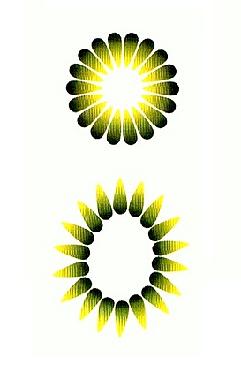 Olhe para o centro de cada figura. Qual é mais brilhante? A maioria das pessoas apontaria para a de cima, apesar de ambas serem igualmente brilhantes. O reflexo pupilar também é mais evidente quando olhamos para a superior, o que indica que o sistema nervoso responde ao brilho percebido, em vez do real.